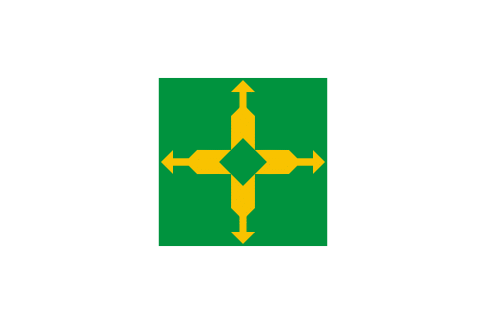 - A cruz com o losango verde ao centro simboliza a herança indígena e a força que emana do centro para todas as direções. Formada por quatro setas, numa alusão às flechas indígenas, a figura lembra também o Cruzeiro do Sul, a cruz de Cabral e o sentimento cristão.